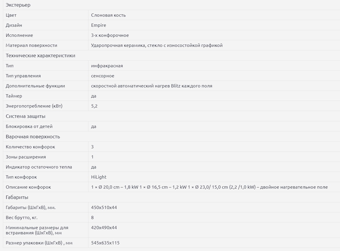 Панель конфорок |