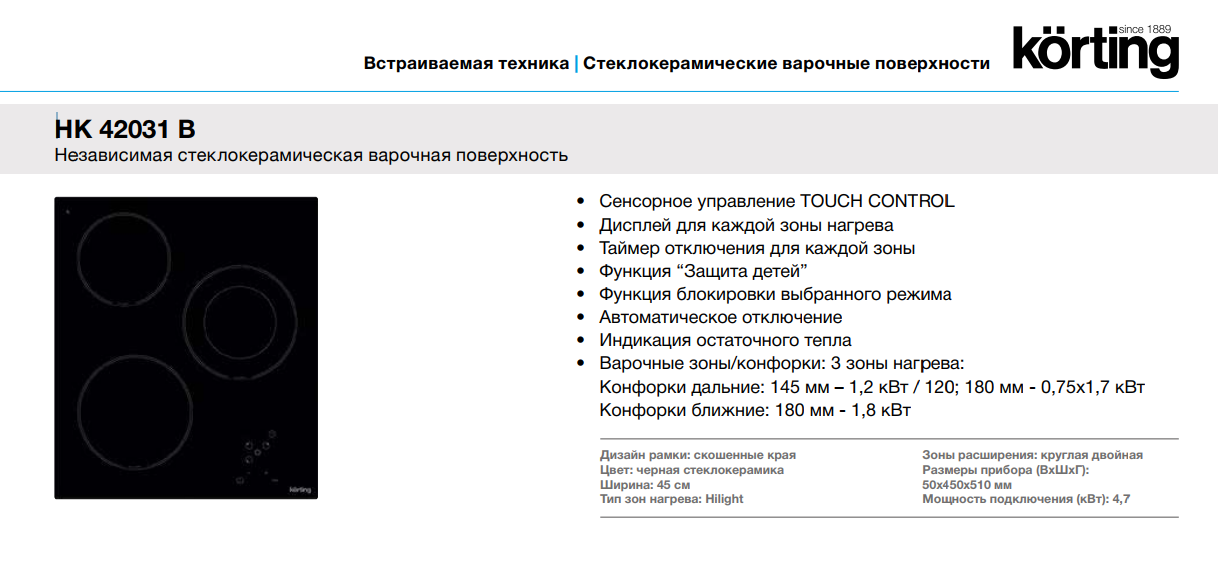 Korting (Кёртинг) HK 42031 B - электрическая варочная панель