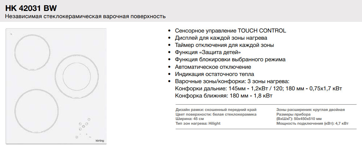 Korting (Кёртинг) HK 42031 BW - электрическая варочная панель