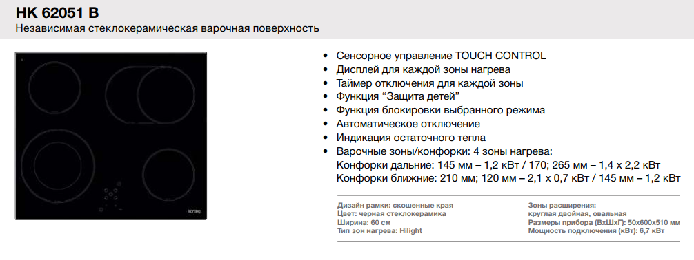 Korting (Кёртинг) HK 62051 B - электрическая варочная панель