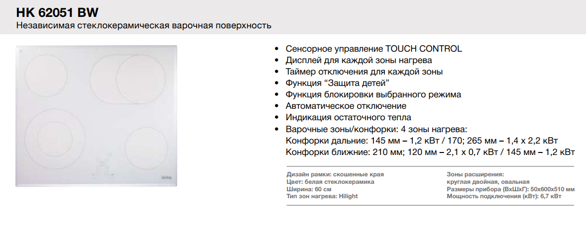 Korting (Кёртинг) HK 62051 BW - электрическая варочная панель