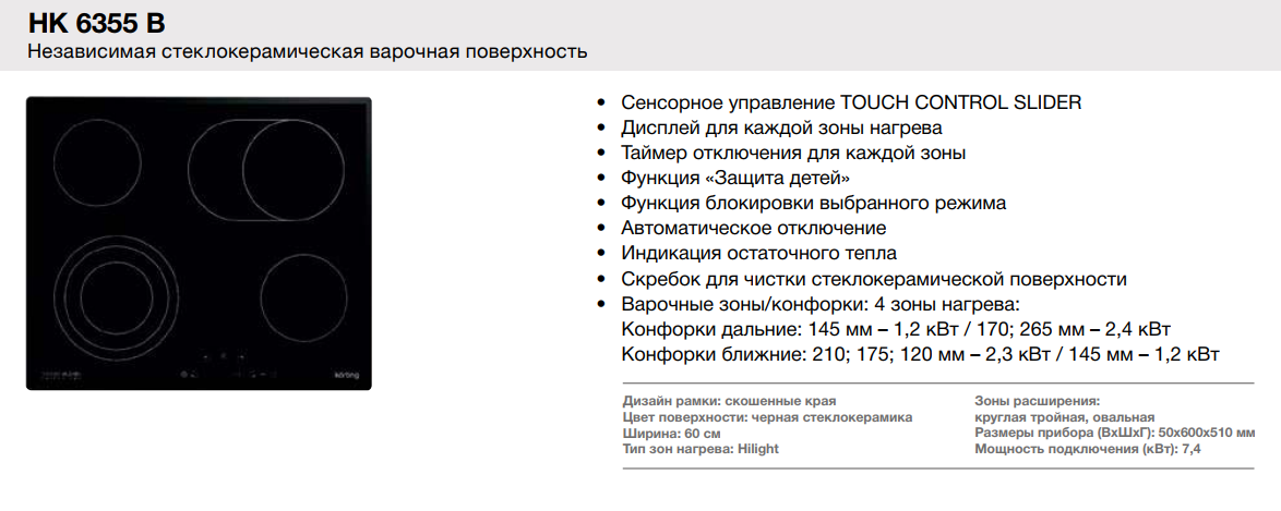 Korting (Кёртинг) HK 6355 B - электрическая варочная панель