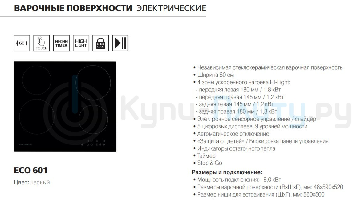 Электрическая варочная панель Kuppersberg (Купперсберг) ECO 601