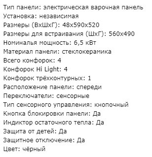 Панель конфорок |