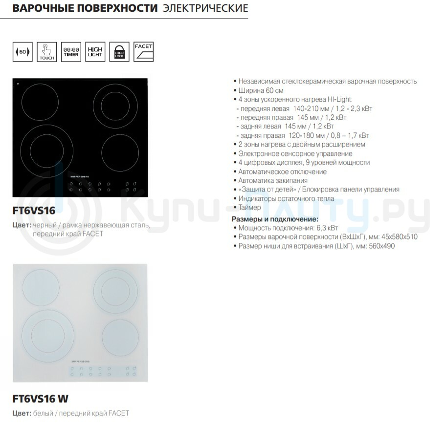 Электрическая варочная панель Kuppersberg (Купперсберг) FT6VS16