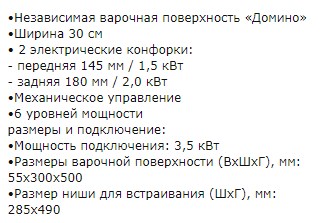 Панель конфорок |