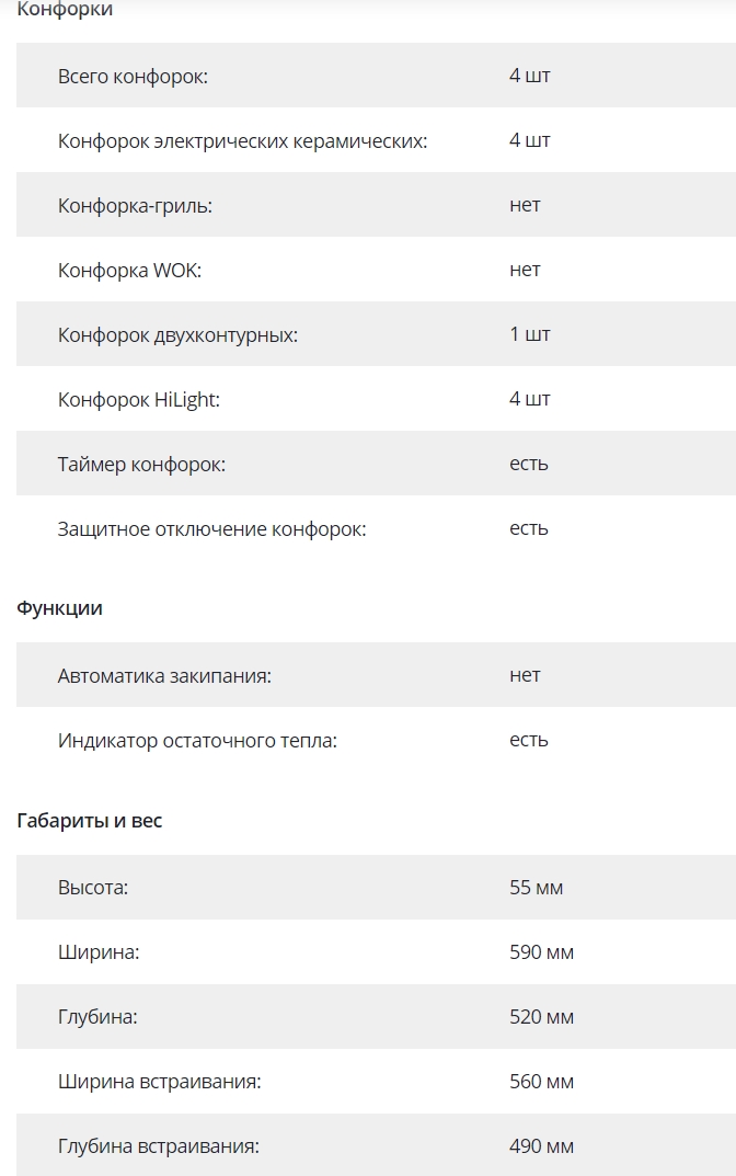 Конфорок индукционных |