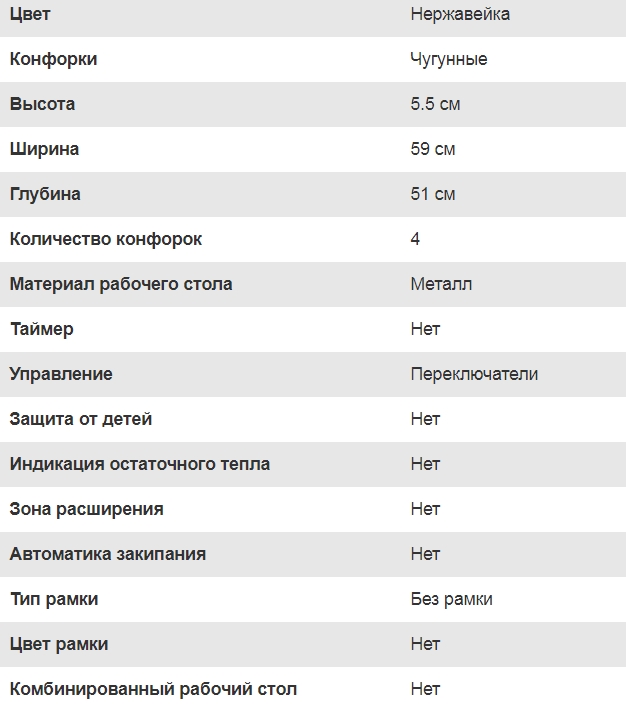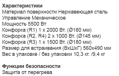 Конфорок индукционных |