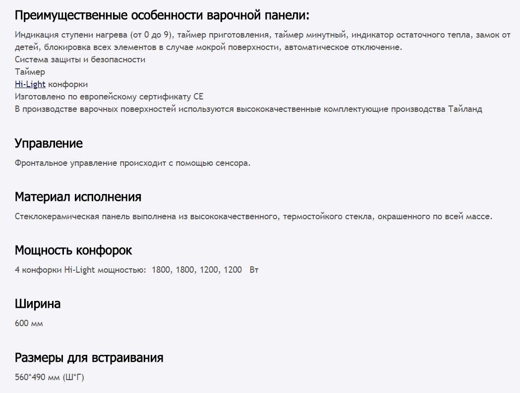 Панель конфорок |