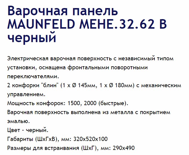 Электрическая варочная панель MAUNFELD (Маунфилд) MEHE.32.62B