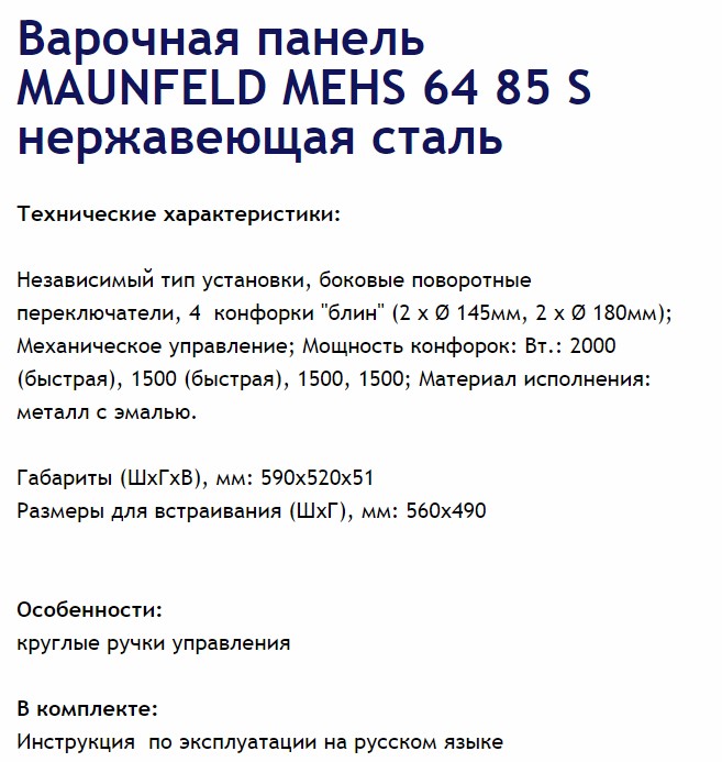 Электрическая варочная панель MAUNFELD (Маунфилд) MEHS.64.85S