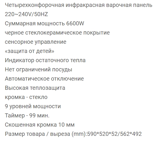 Электрическая варочная панель RICCI (Риччи) KS-T46602IR2B