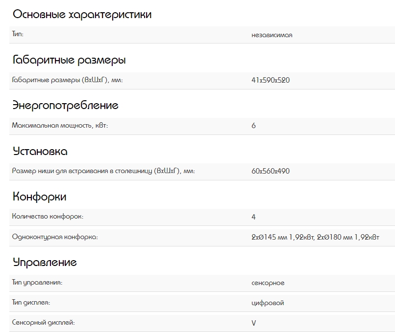 Конфорок индукционных |