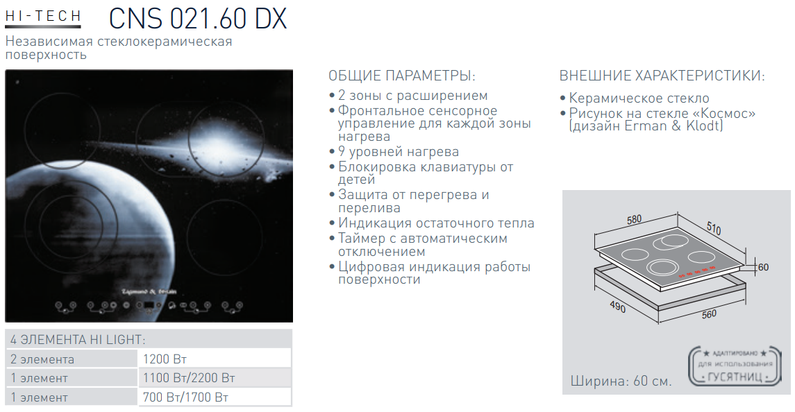 Электрическая варочная панель Zigmund-Shtain (Зигмунд-Штайн) CNS 021.60 DX