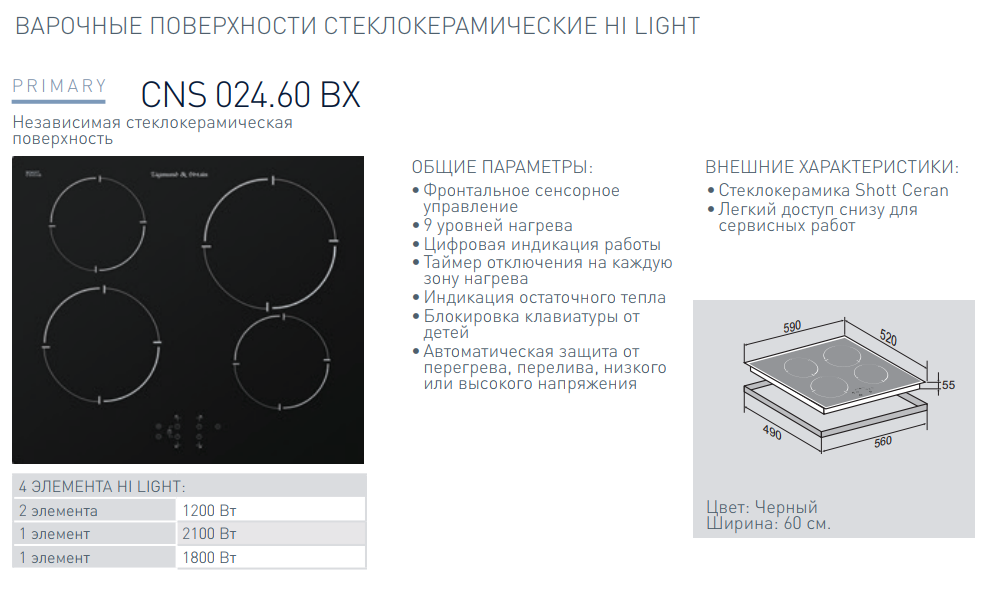 Электрическая варочная панель Zigmund-Shtain (Зигмунд-Штайн) CNS 024.60 BX