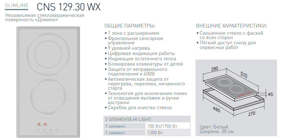 Электрическая варочная панель Zigmund-Shtain (Зигмунд-Штайн) CNS 129.30 WX