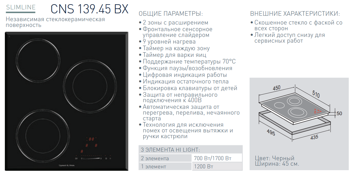 Электрическая варочная панель Zigmund-Shtain (Зигмунд-Штайн) CNS 139.45 BX