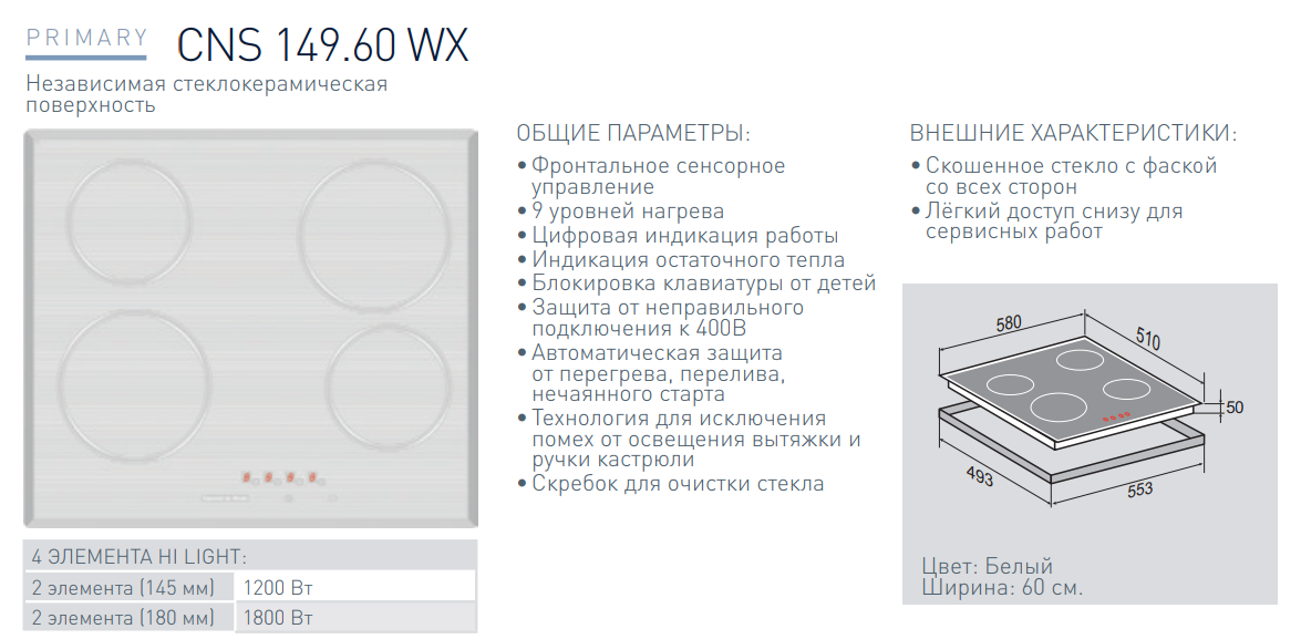 Электрическая варочная панель Zigmund-Shtain (Зигмунд-Штайн) CNS 149.60 WX