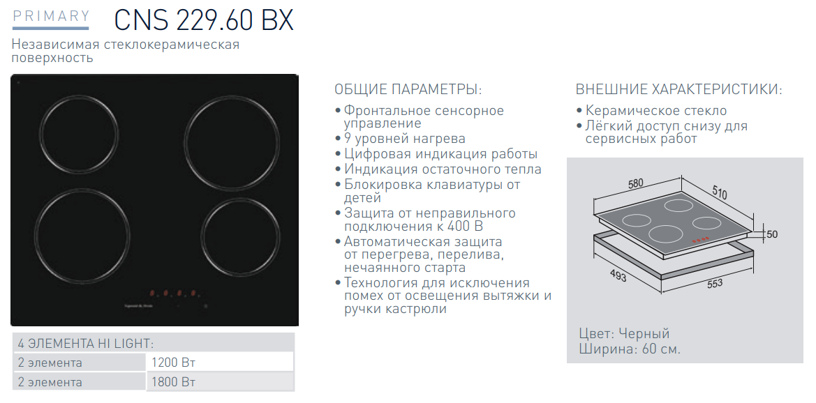 Электрическая варочная панель Zigmund-Shtain (Зигмунд-Штайн) CNS 229.60 BX