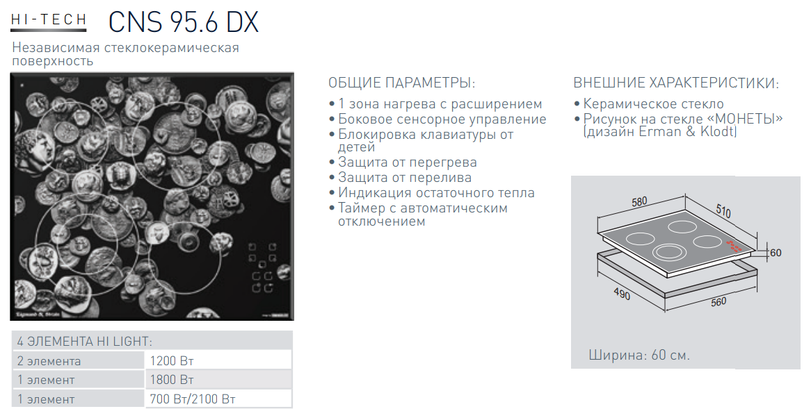 Электрическая варочная панель Zigmund-Shtain (Зигмунд-Штайн) CNS 95.6 DX