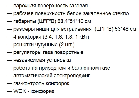 Цвет панели конфорок |