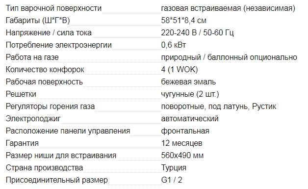 Ширина варочной