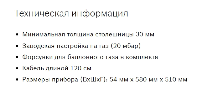 Ширина варочной