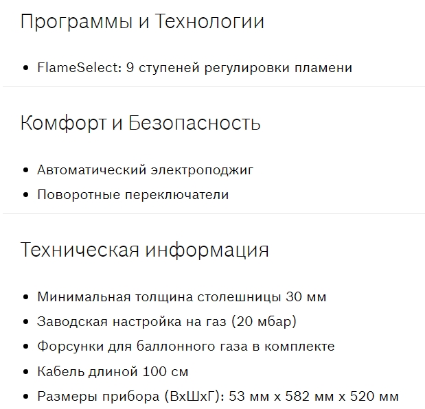Ширина варочной