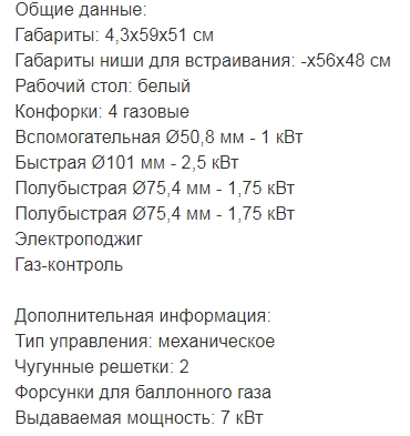 Ширина варочной