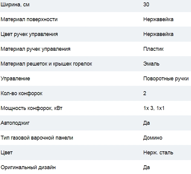 Ширина варочной