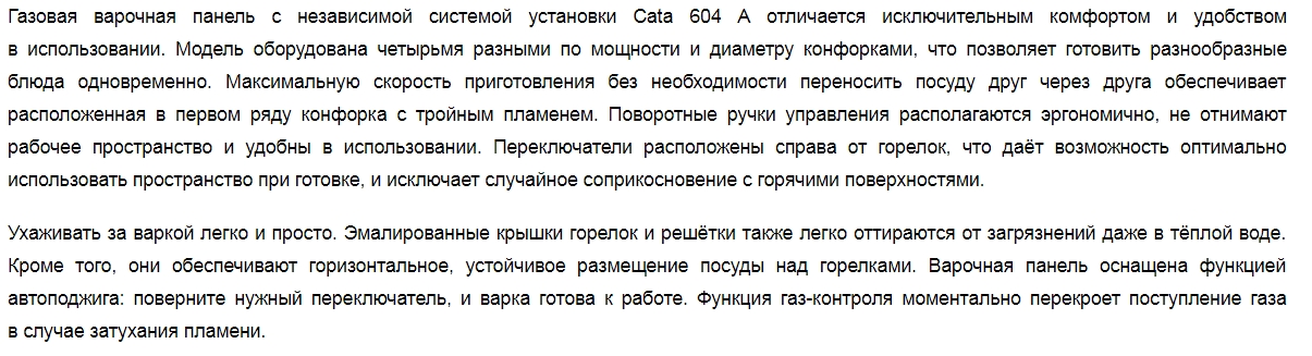 Газовая варочная панель Cata (Ката) 604 A