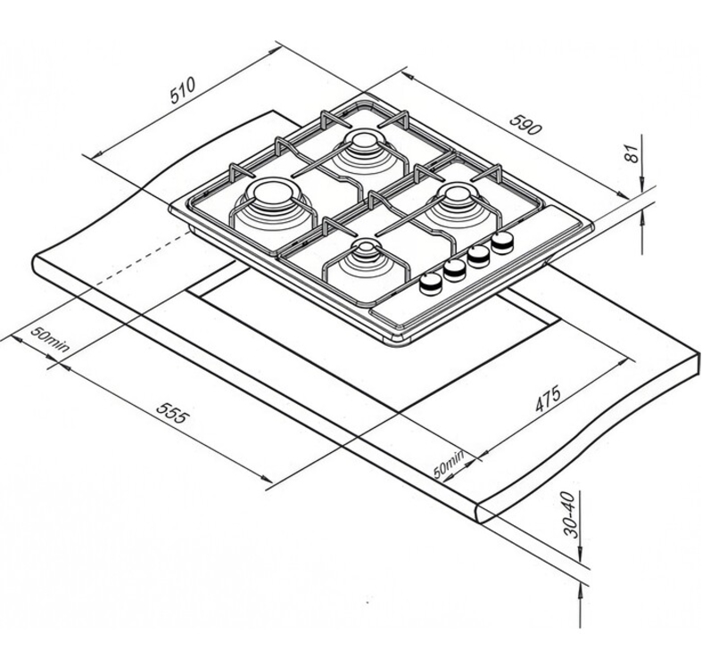 Глубина варочной поверхности |