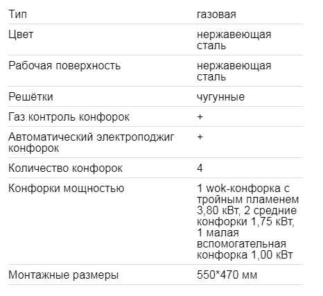 Всего конфорок |