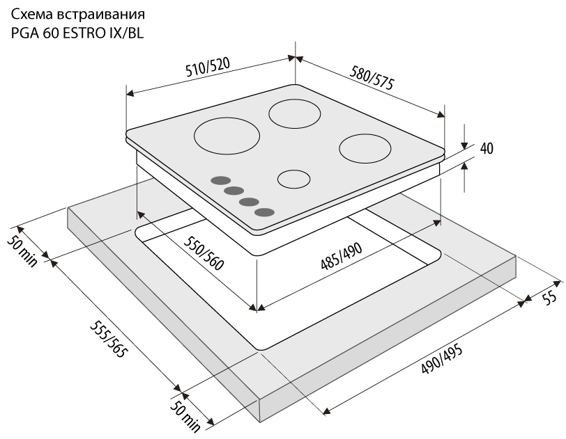 Газовая варочная панель Fornelli (Форнелли) PGA 60 ESTRO IX