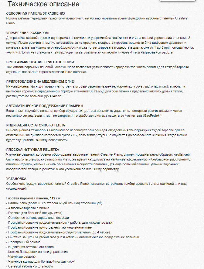 Газовая варочная панель Fulgor-Milano (Фулгор-Милано) SH 1124 G 2DWK XX