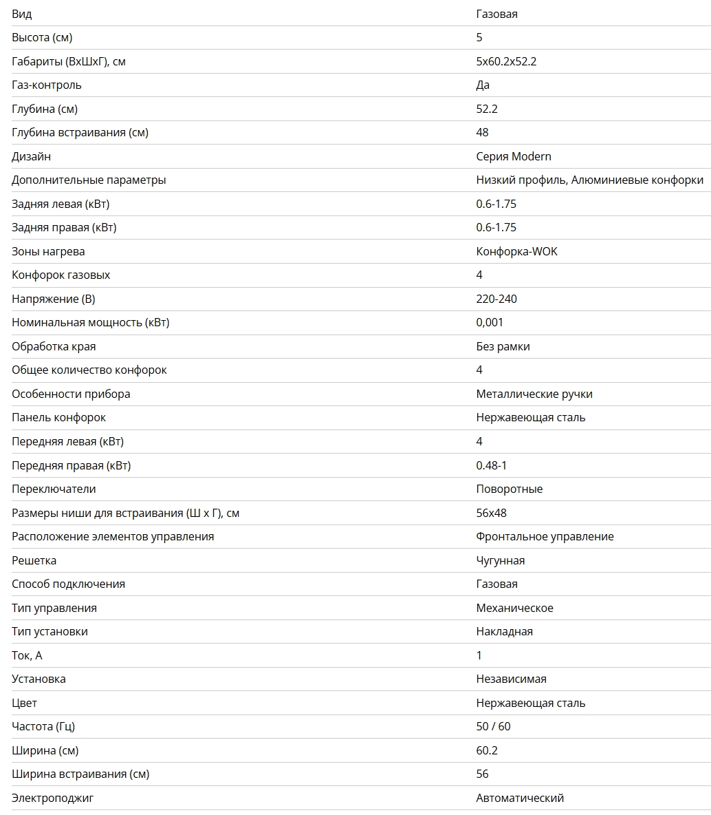 Всего конфорок |