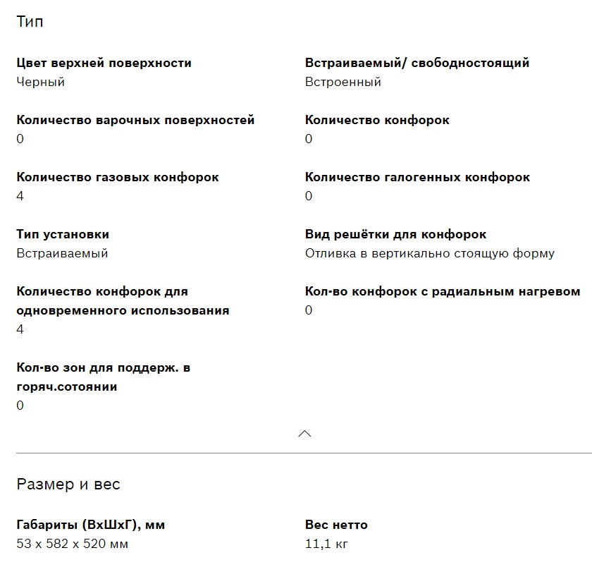 Всего конфорок |