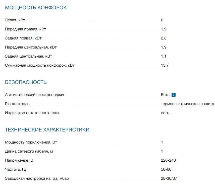 Всего конфорок |