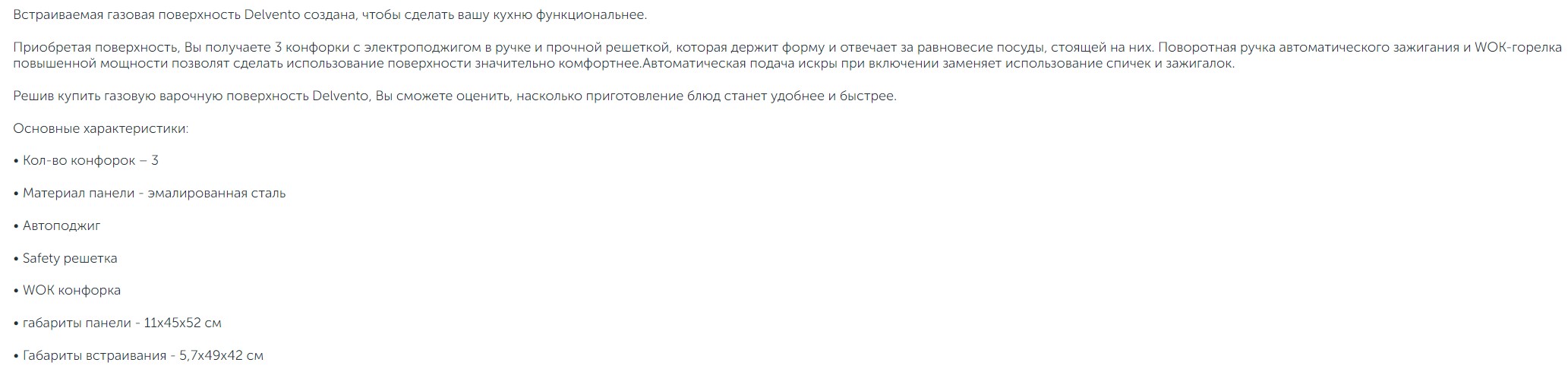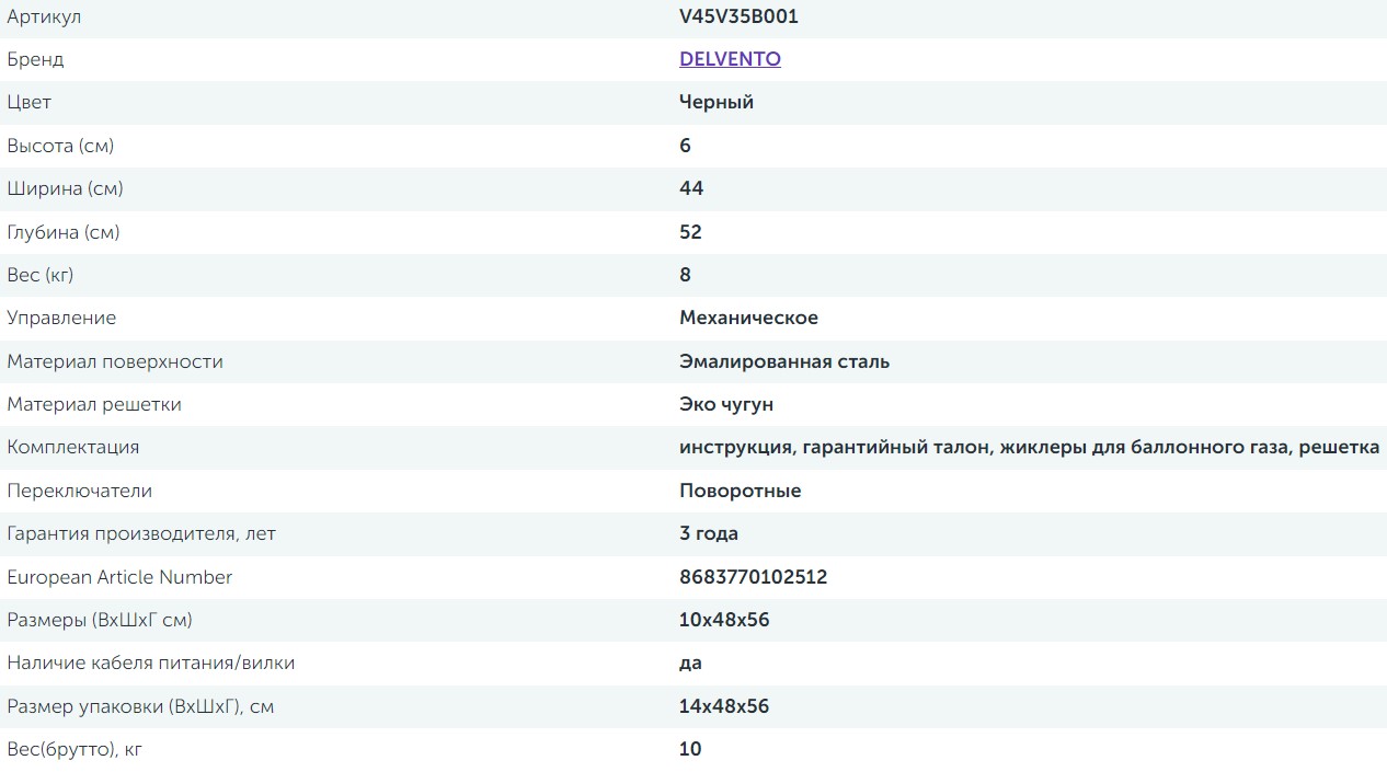 Газовая варочная панель Delvento (Делвенто) V45V35B001