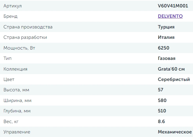Газовая варочная панель Delvento (Делвенто) V60V41M001