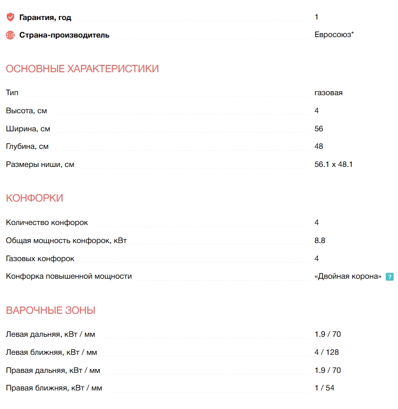 Всего конфорок |