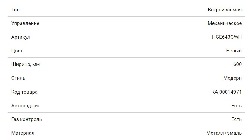 Газовая варочная панель HOMSair (ХОМСЭйр) HGE643GWH