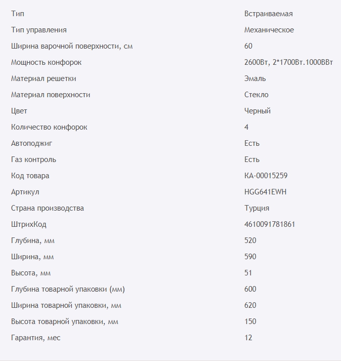 Газовая варочная панель HOMSair (ХОМСэйр) HGG641EWH