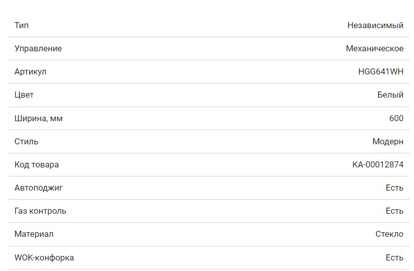 Газовая варочная панель HOMSair (ХОМСЭйр) HGG641WH
