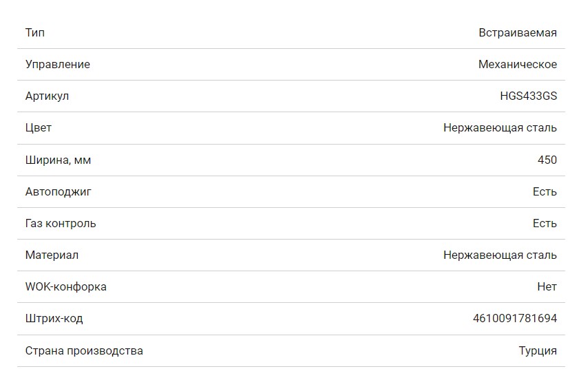 Газовая варочная панель HOMSair (ХОМСЭйр) HGS433GS