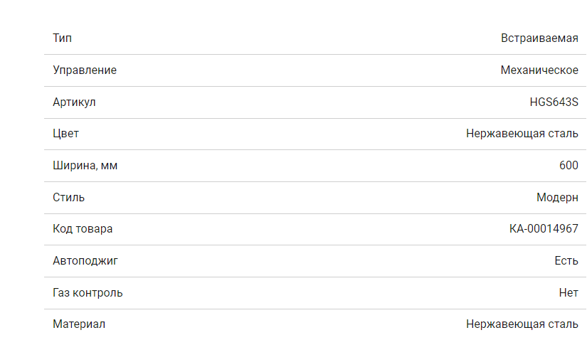 Газовая варочная панель HOMSair (ХОМСЭйр) HGS643S
