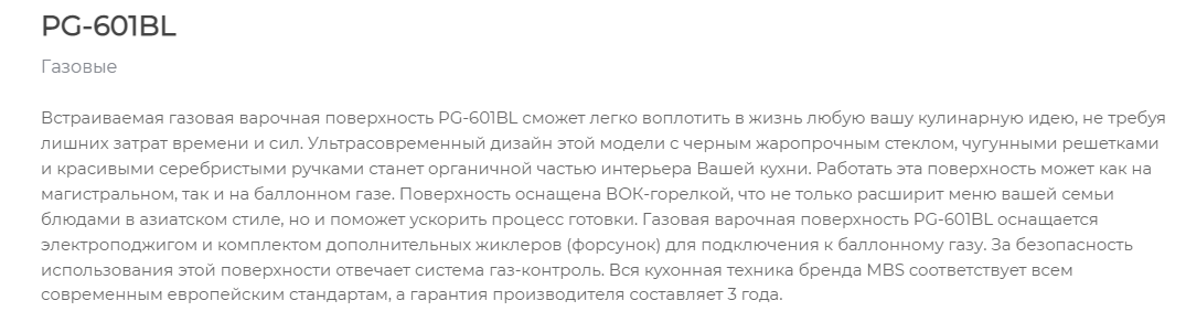 Газовая варочная панель MBS PG-601BL