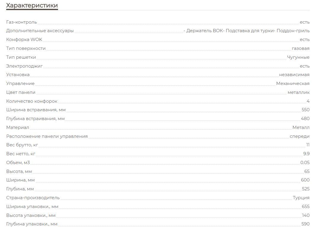 Газовая варочная панель MBS PG-606IV