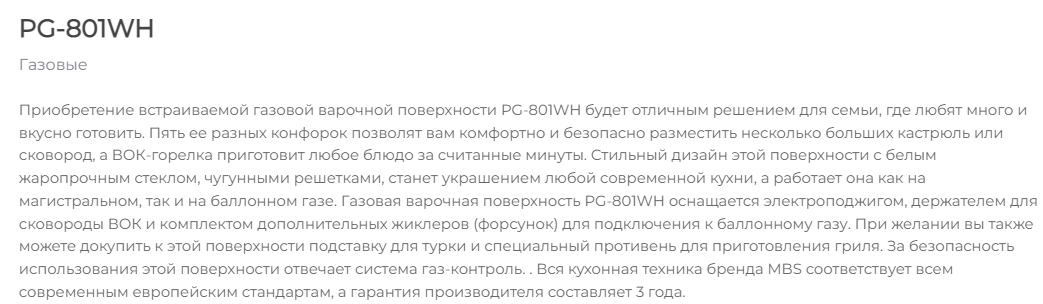 Газовая варочная панель MBS PG-801WH