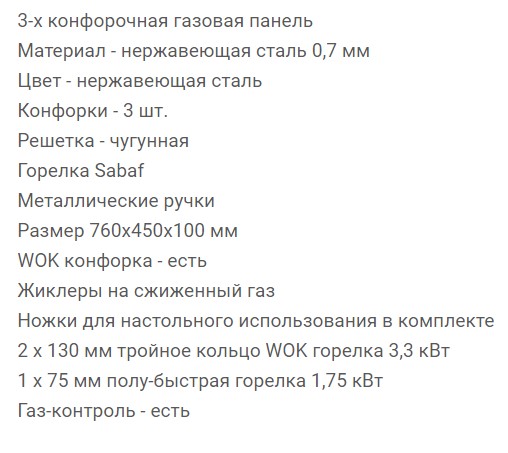 Всего конфорок |